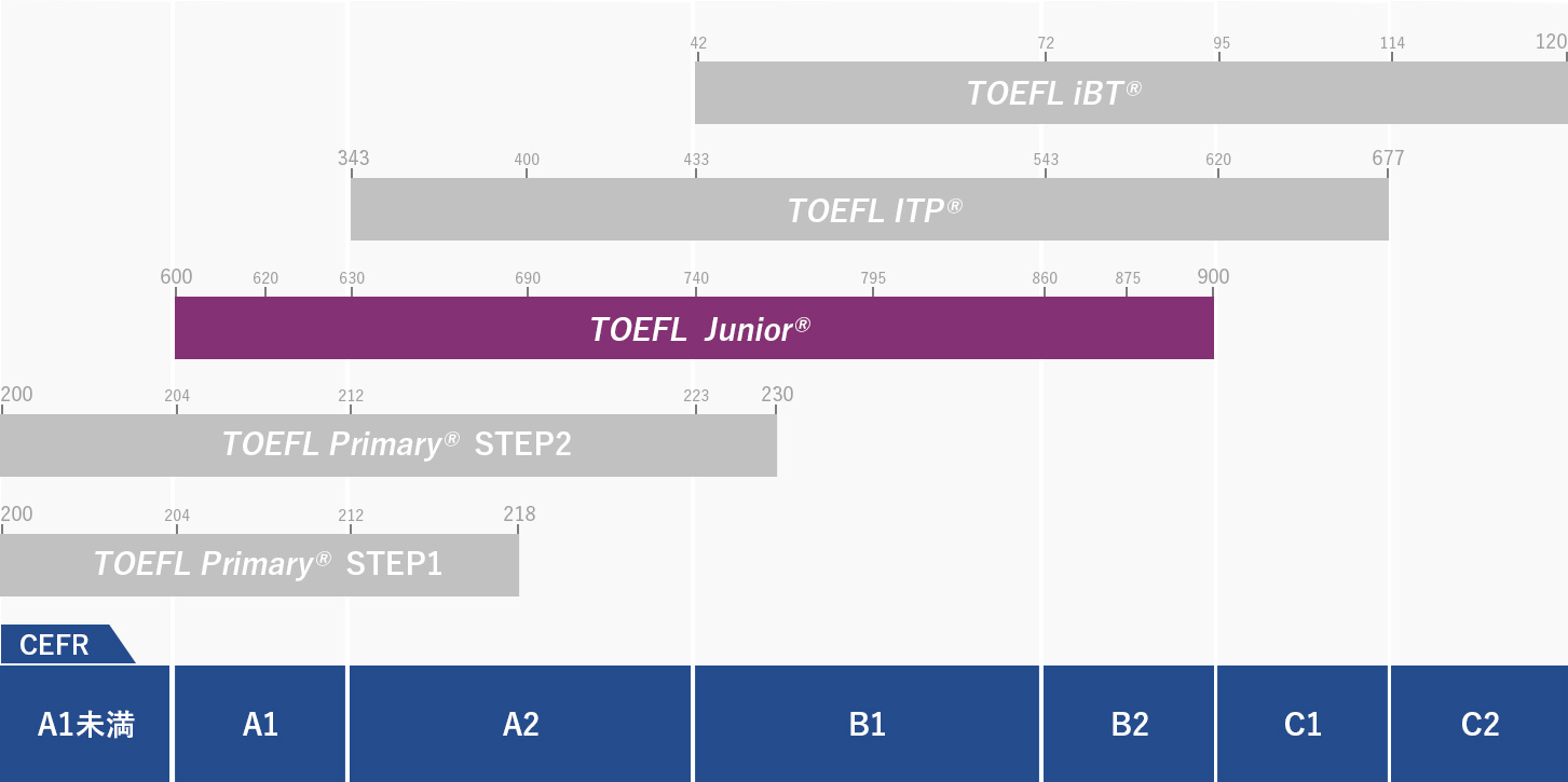 ※1. CEFRの幅はTOEFL Primary® Step 1・Step 2、TOEFL Junior® Standard