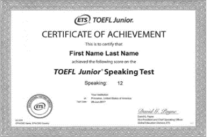 - ・TOEFL Junior® Speaking のGOLDランク(Score Range Between 14 and 16)を取得された方
