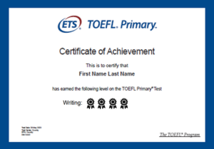 - ・TOEFL Primary® Speaking の5リボン (Score Range Between 23 and 27)を取得された方